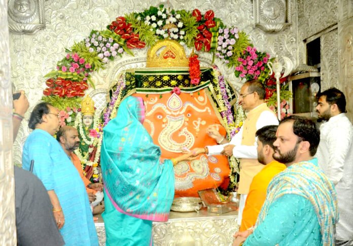 पत्नी साधना और परिवार सहित खजराना गणेश मंदिर पहुंचे सीएम शिवराज