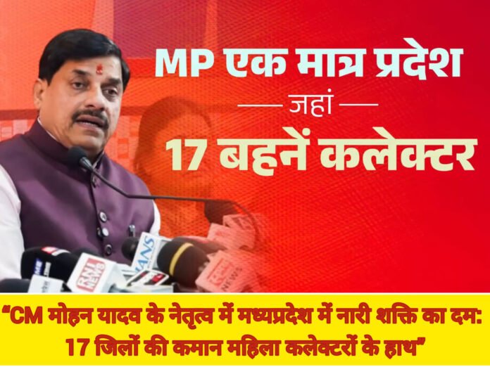मोहन यादव के नेतृत्व में मध्यप्रदेश आज नारी सशक्तिकरण के क्षेत्र में एक मजबूत उदाहरण बनकर उभर रहा है। यहां नारी शक्ति अब केवल नारे तक सीमित नहीं, बल्कि प्रशासनिक ढांचे में निर्णायक भूमिका निभा रही है।प्रदेश में 17 जिलों की कमान महिला कलेक्टरों के हाथों में है, जो अपने-अपने क्षेत्रों में प्रशासन का नेतृत्व कर रही हैं। इतना ही नहीं, 10 से अधिक जिले ऐसे हैं जहां कलेक्टर और एसपी—दोनों महत्वपूर्ण पदों पर महिलाएं कार्यरत हैं। यह आंकड़े केवल संख्या नहीं बल्कि सरकार की सोच, नीति और महिलाओं को आगे बढ़ाने की प्रतिबद्धता को दर्शाते हैं।
